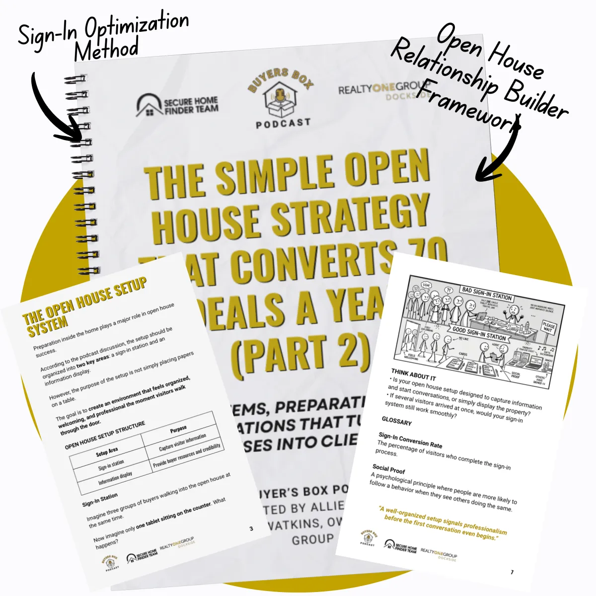 ✅ The Open House Setup System that increases sign-ins using simple tools like multiple clipboards, visible social proof, and a strategically placed sign-in station.